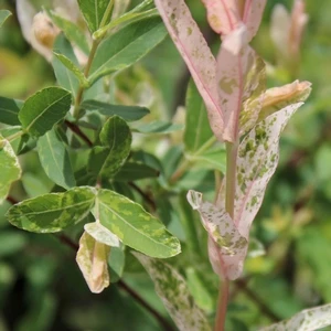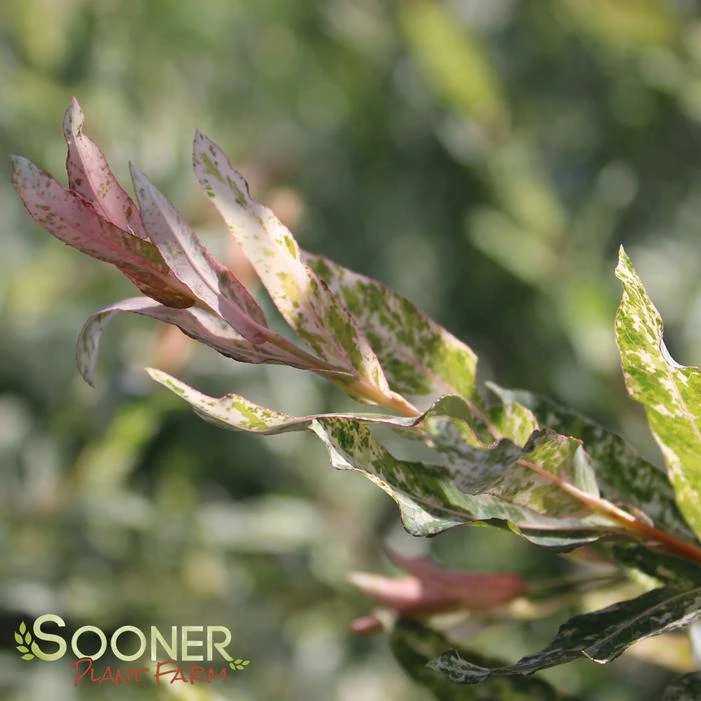 Buy Dappled Willow online. Add a splash of color to your landscape with this very popular dappled leafed willow. New foliage is white-green-pink in color. Can be grown as a shrub or trained as a small tree.
