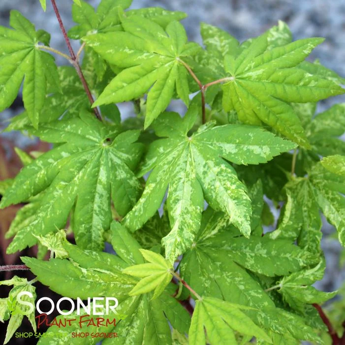 Buy Kumoi Nishiki Full Moon Upright Full Moon Japanese Maple online. This beautiful upright growing Japanese maple had us in awe when we saw it due to the amazing variegated leaves it produces and holds most of the year. Creamy white and green speckled leaves are produced in spring and will continue to show this variegation into the summer months. Some darkening can occur in warmer zones during the summer months. In fall, shades of reddish-orange to yellow appear for another amazing display of color! Definitely hard-to-find and unique, this is a must-have specimen for all collectors!