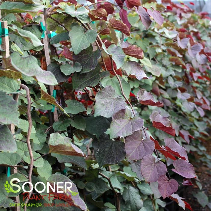 Buy Purple Rain Weeping Redbud online. A purple-leafed weeping redbud, ‘Purple Rain’ is characterized by a very vigorous and fast growth habit. Dark purple leaves are produced in spring after pink flowers have appeared. The leaves mature to purplish-dark green in summer, and fall color shows off a great bright yellow explosion of color. The weeping habit helps to provide winter interest in the landscape.