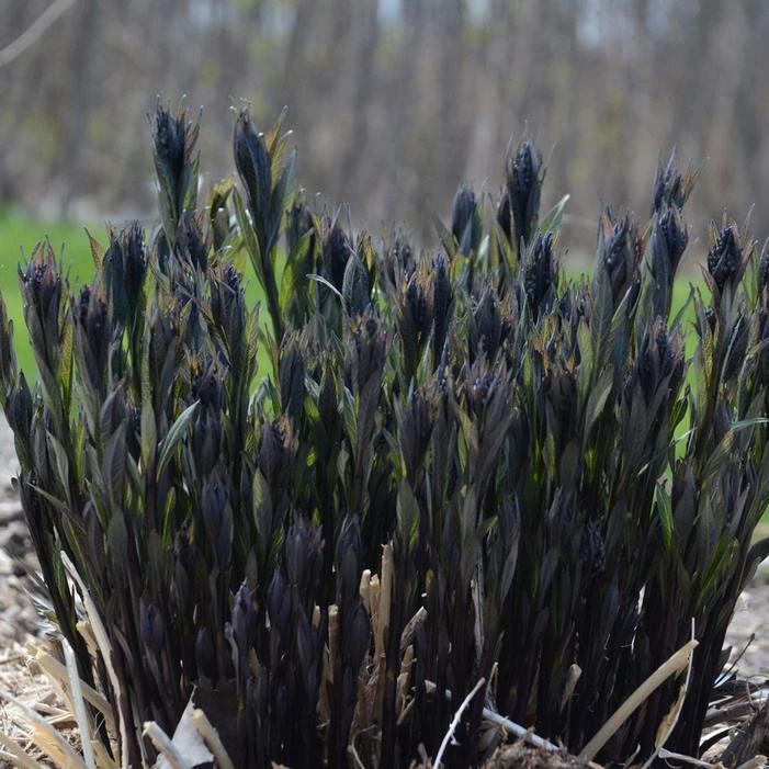Buy Storm Cloud Blue Star online. When breaking dormancy in early spring, new stems will be produced that are almost black. Dark green leaves with silver veins follow this early growth, and then light blue flowers are in huge masses all over the top of the plant. Like other plants in the genus, ‘Storm Cloud’ will have amazing golden yellow fall color, creating an amazing multi-season show in your landscape!